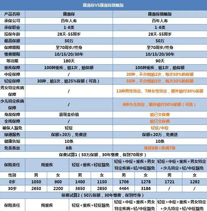 如表所示,與舊版本的康惠保相比,升級(jí)后的康惠保升級(jí)了6個(gè)點(diǎn):