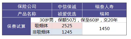 可以看出,禎愛優(yōu)選吸煙人群的保費(fèi)相較于非吸煙體多了一倍。