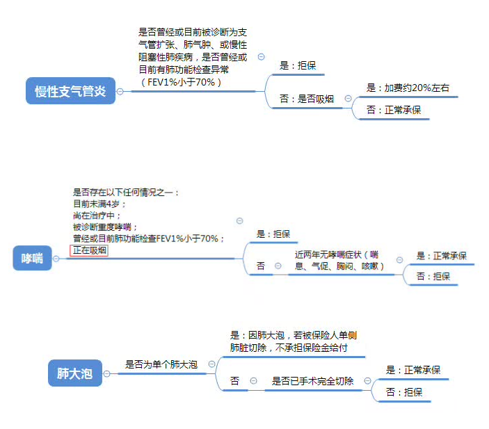 我們可以看出,在跟肺有關(guān)的健康告知里,如果不吸煙對我們投保是很有利的。吸煙的話少則加費(fèi),重則拒保。并且對于支氣管擴(kuò)張、肺氣腫、肺部結(jié)節(jié)等情況,哆啦A保是直接拒保的。