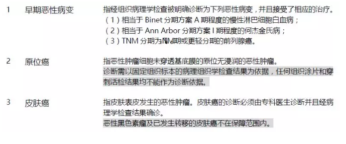 例如:“極早期惡性腫瘤或惡性病變”。大多數重疾險的疾病定義如下: