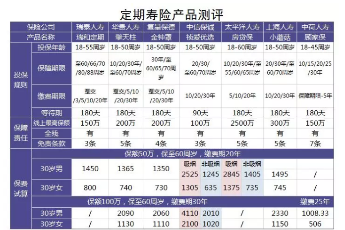 三、6款定期壽險(xiǎn)產(chǎn)品測評