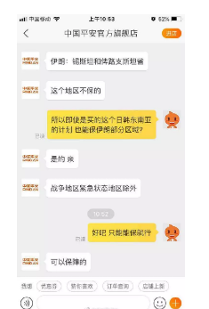 雖然一些境外旅游險(xiǎn)是會(huì)將部分戰(zhàn)亂地區(qū)除外,但楊女士已詢問過平安客服,確定父母去的地區(qū)是在承保范圍內(nèi)的。