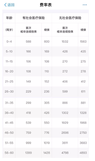 最后當(dāng)然要落到保費(fèi)上了,好醫(yī)保的費(fèi)率表如下: