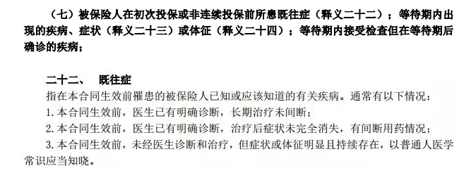 而尊享e生旗艦版的對責(zé)任免除的既往癥是這樣設(shè)定的: