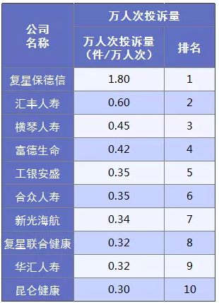 我們可以看出來(lái),即使是萬(wàn)人次投訴量最高的復(fù)星保德信,也僅為1.8。