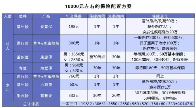 而以上的方案只是配置保險(xiǎn)時(shí)的一個(gè)大方向思路:先大人后小孩,選消費(fèi)而非返還,先保額后保障期限。
