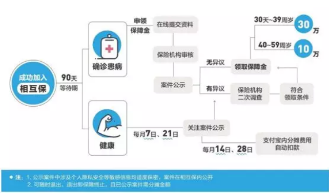 0元門檻,加入相互保之后,如果發(fā)生了100種重大疾病,就可以獲得10萬或30萬的理賠金,而這筆錢,則需要相互保里其他還沒有生病的成員平攤。