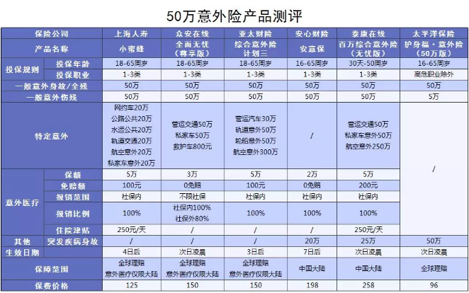 三、意外險產(chǎn)品測評
