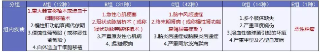 表格中標紅的6種疾病為比較高發(fā)的重疾,從分組上來看,算是比較合理的。