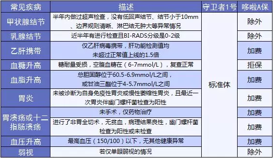 但是,哆啦A保的優(yōu)勢就在于,大小三陽也可以加費承保,但守衛(wèi)者1號就比較嚴格,直接是拒保。