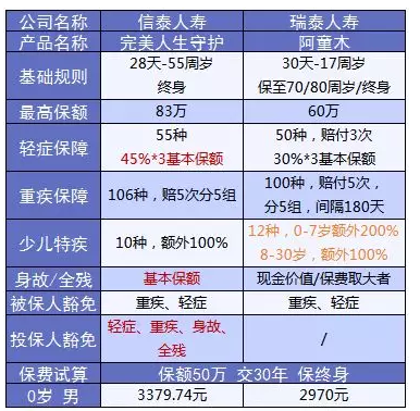 完美人生守護(hù)如果是給未成年人投保的話(huà),特疾是必選的,那么在價(jià)格上會(huì)不會(huì)加價(jià)很多呢?這里跟瑞泰阿童木做個(gè)小對(duì)比: