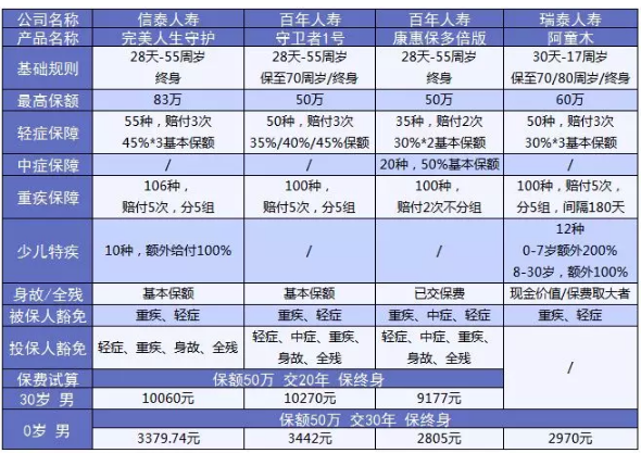完美人生守護(hù)的少兒特疾涵蓋全不全面呢?多保魚(yú)拿了幾款熱銷(xiāo)的少兒重疾險(xiǎn)來(lái)與之比較一下: