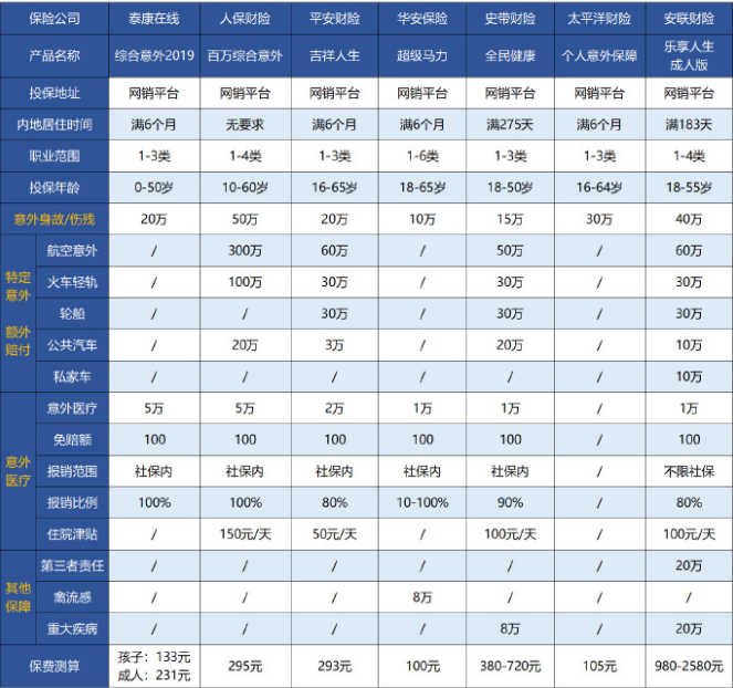 市面上很多意外險(xiǎn),外籍人士都不能買(mǎi),這里也為大家匯總一些可投保的產(chǎn)品: