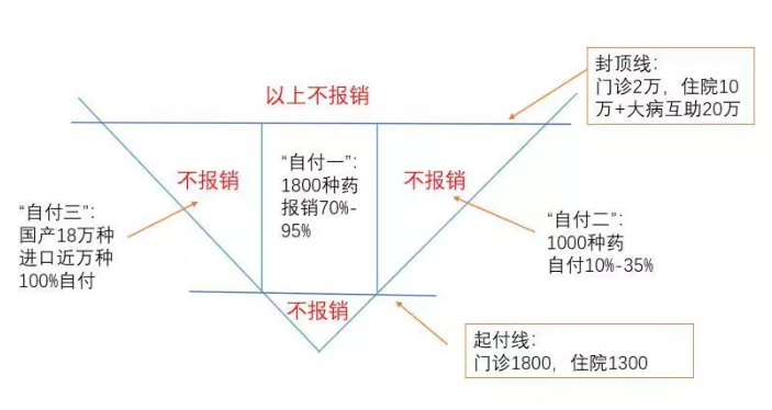 上述部分的非報銷是社保無法報銷的部分。特別注意這種類型的保障,如好的藥得自付,醫(yī)院有一個指標來控制使用社保藥物的使用,出現(xiàn)有藥醫(yī)保沒有藥,但自費就有藥的情況,所以在場合它還增加了自付的比例。