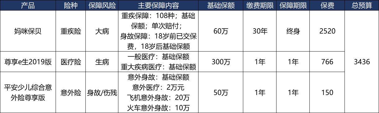小魚根據(jù)預算情況的不同,為寶寶定制了保險套餐供寶媽參考