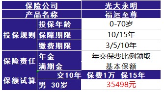 假設(shè)投保人年交1萬元保費(fèi),交10年,保15年,保額35490元。那么,可以領(lǐng)到的錢是5萬元。