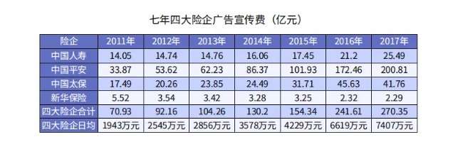 而“大保險公司”砸在廣告上的費用有多少呢?