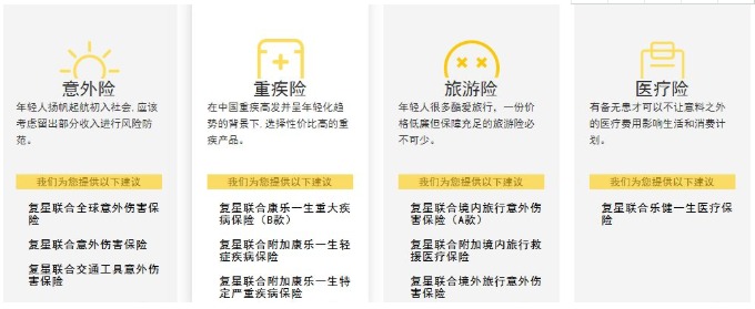 復星聯(lián)合健康主要經(jīng)營壽險、重疾險、醫(yī)療險、意外險等各類人身保險業(yè)務(wù)。其在保險行業(yè)里規(guī)模并不大,所以相應(yīng)的推出的產(chǎn)品也沒有很多。