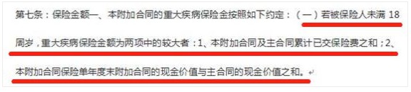 上邊的條款簡單來說就是:18歲之前得大病,不賠錢,只退保費?。。?/span>