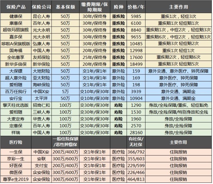 我總結(jié)了一些熱銷的保險(xiǎn),包括日常常見的四大類:重疾、醫(yī)療、意外、壽險(xiǎn)。