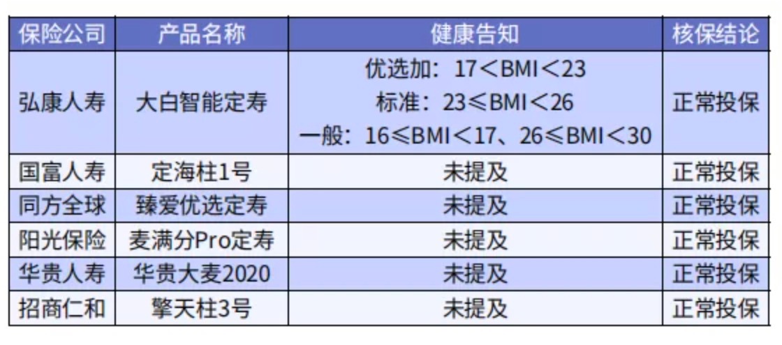 也就是說(shuō)無(wú)論是超重還是偏瘦的人群,只要能通過(guò)健康告知,都能順利買到壽險(xiǎn)。
