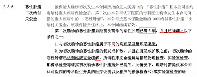2、惡性腫瘤的二次賠付。