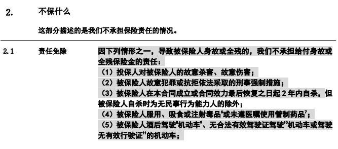 壽險:保障責任簡單,免責簡單,一般除了意行為、違法犯罪和自然災害等不可抗力因素導致死亡/完全殘疾,可以得到賠付。