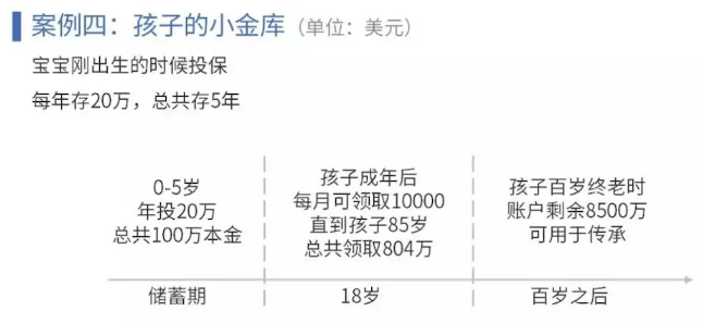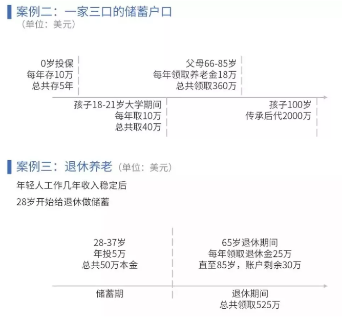 當(dāng)然,此類產(chǎn)品不僅是高凈值家庭的專利,香港保險(xiǎn)是海外資產(chǎn)投資的門檻較低,投資門檻不高,適合廣大中產(chǎn)家庭安排自己的長期儲(chǔ)蓄計(jì)劃:(一大波例子正在路上)