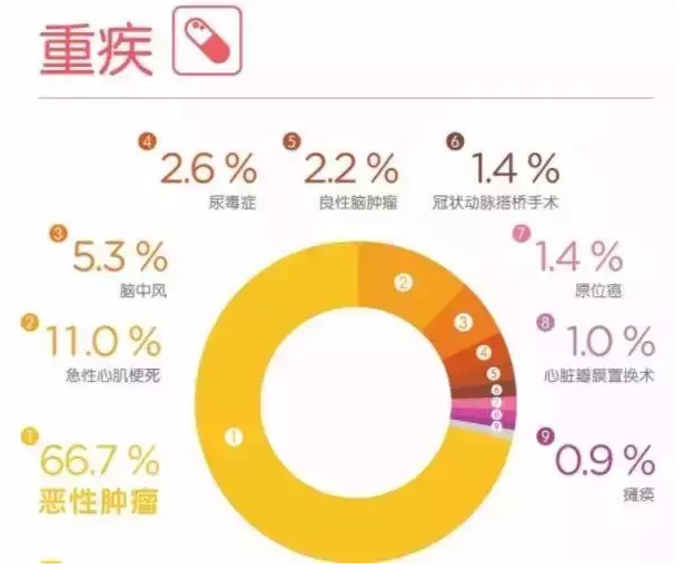 以上數(shù)據(jù)顯示,癌癥發(fā)病率最高,發(fā)病率最高,為理賠,占60%-70%,發(fā)病年齡越來越年輕。
