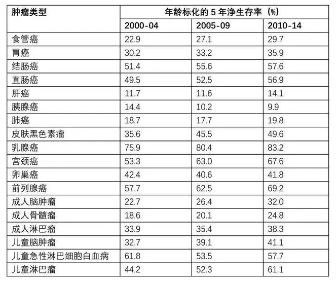 2、中國癌癥患者的5年生存率穩(wěn)步上升