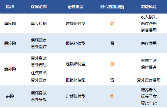 常見的如重大疾病保險、定期壽險等,即使多家投保,出險后也可以同時申請。
