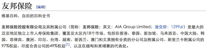 大家去看看友邦保險維基百科簡介: