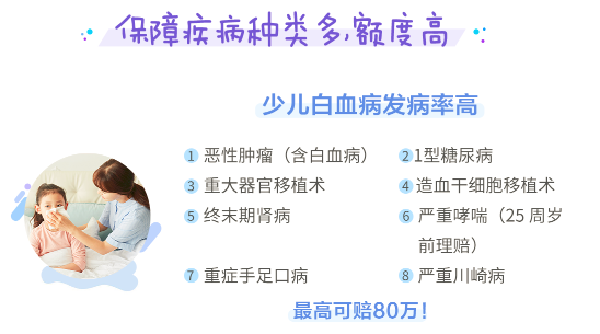 中荷人壽童樂保少兒重大疾病保險,這款少兒的疾病包括定期重疾保險,包括兒童高發(fā)的嚴重手足口病、脊髓灰質(zhì)炎、白血病等,而且重疾比少兒重疾險慧馨安還要多,有70多種,慧馨安是50種。