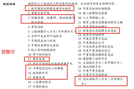其中70種重大疾病賠付100%的保險金額,合同在支付后終止,還有另外10種其他特定疾病是賠付保險金額的兩倍,類似于慧馨安產(chǎn)品責任,但慧馨安是8種特點疾病,如圖所示: