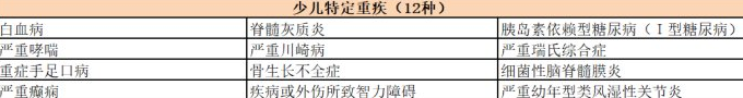 兒童特定的嚴(yán)重疾?。涸诒槐kU(xiǎn)人年滿18周歲之前,第一次被診斷出患有特定的嚴(yán)重疾病(12種類型)。在支付重大疾病保險(xiǎn)費(fèi)的基礎(chǔ)上,額外給付保險(xiǎn)費(fèi)為100%。