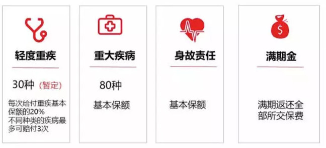 簡而言之,福滿分是具有死亡責(zé)任和返還保費(fèi)責(zé)任的定期重大疾病保險(xiǎn)。