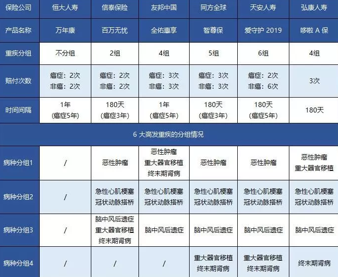 沒(méi)有分組最好:例如恒大萬(wàn)年康,每種疾病你可以賠一次。雖然在賠付之間需要隔1年,但是可以接受。此前,我還對(duì)此類(lèi)產(chǎn)品進(jìn)行了橫向測(cè)評(píng)。如果您有興趣,可以看看。