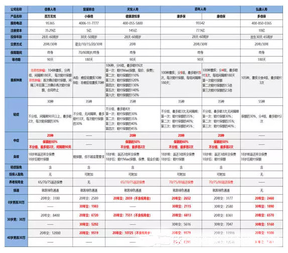 從表中可以看出,以0歲男孩每年支付30萬保額為例,百年康多保 20年付款比天安的健康源悅享便宜7%,超過弘康的多倍保約7%,天安健康源享有60歲以后住院護(hù)理津貼的優(yōu)勢,但保障限制是在被保險(xiǎn)人60之前沒有申請重疾理賠,如果60歲如果你已申請住院護(hù)理津貼,您將從、疾病理賠結(jié)束時(shí)支付的住院護(hù)理基金中扣除。該產(chǎn)品的具體責(zé)任如下:天安健康源(悅享)首創(chuàng)重疾+住院關(guān)愛津貼,再次引領(lǐng)市場趨勢;多年來市場上的成本效益市場弘康多重保險(xiǎn)比保費(fèi)高出約7%,而且優(yōu)勢也很明顯,額外的疾病是賠付2次,輕癥沒有分組沒有間隔,你最多可以賠3次,每次保額也多次高于弘康多倍保,所以額外的保費(fèi)仍然更有價(jià)值;