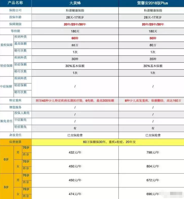 接下來,我們將分析和評(píng)估兩款孩子的定期重大疾病保險(xiǎn)大黃蜂、 慧馨安: