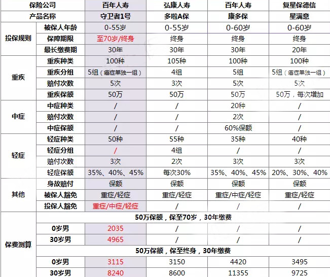在市場上,多次賠付危重疾病產(chǎn)品是多種多樣的。多保魚精心挑選了3種熱銷的多次賠付重大疾病保險,與守衛(wèi)者 1號進行了比較,具體產(chǎn)品如下: