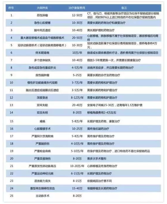 保險(xiǎn)行業(yè)協(xié)會(huì)與中國(guó)醫(yī)師協(xié)會(huì)共同制定了重大疾病的定義,對(duì)25種重大疾病的定義基本相同。 25種最嚴(yán)重的疾病占保險(xiǎn)理賠的95%以上,前6位流行率高達(dá)80%。