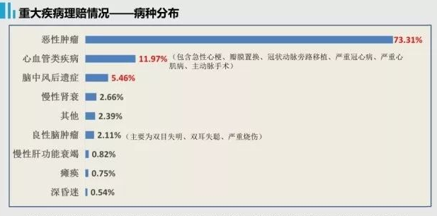 保險(xiǎn)重大疾病保險(xiǎn)不是更多類型的疾病,在重癥疾病保險(xiǎn)中普遍存在的六大疾?。簮盒阅[瘤、急性心肌梗死、主要器官移植或造血干細(xì)胞移植、冠狀動(dòng)脈旁路移植術(shù)、終末期腎病、中風(fēng)后遺癥占絕對比例(概率超過80%),這基本上滿足了一般保單持有人的保障需求,保障范圍涵蓋了50種嚴(yán)重疾病,遠(yuǎn)遠(yuǎn)超過保險(xiǎn)行業(yè)協(xié)會(huì)定義的嚴(yán)重疾病數(shù)量(25種),覆蓋范圍賠付可以達(dá)到97%。就概率而言,其中有四十個(gè)和幾百個(gè)沒有太大的不同。