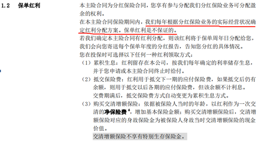 保險公司的收益是根據(jù)經(jīng)營狀況來決定的,各行各業(yè)不能保證自己一定盈利、盈利多少,保險公司也不例外,保險公司不能確定自己盈利多少,所以保險公司設定一個保底利率,也就是最低收益,多數(shù)是2%左右,能夠達到3%以上的就是很不錯的產(chǎn)品了。以某安公司產(chǎn)品為例: